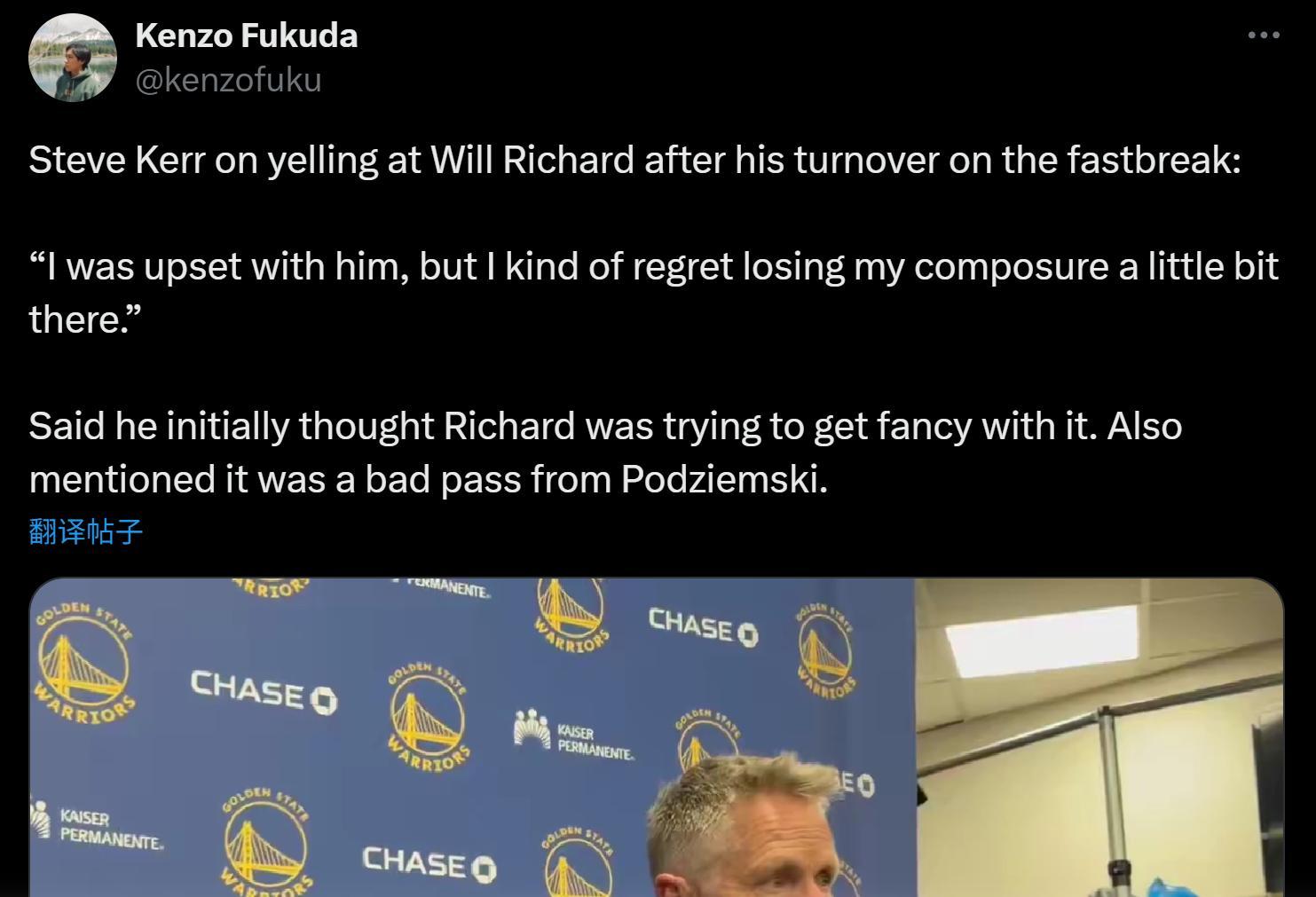 除此之外,科尔谈到了库里的伤病问题,透露库里在赛前进行了个人训练,自己认为他本赛季肯定会回归,但恢复时间不确定是一周、两周,还是更长的时间,因为他的状况有些棘手。