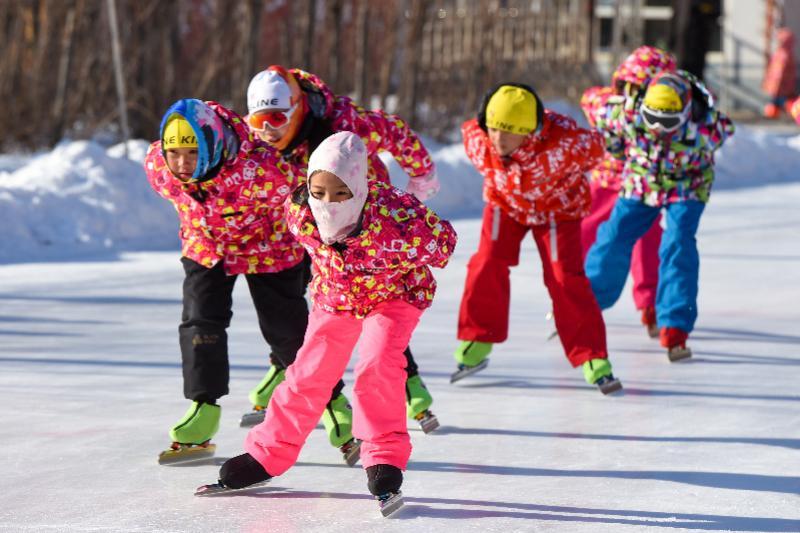 1月15日 数九寒天,吉林省四平市六马路小学操场“变身”冰场,学校“红色骑兵”速滑队队员在冰场上飞驰,热闹非凡。 新华社记者 张楠 摄