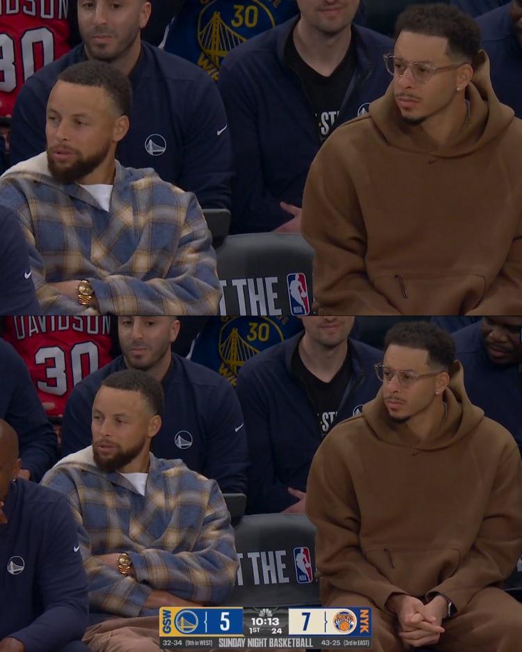 一直处理伤病问题的库里也在场边接受NBC直播采访时自嘲到:“我和克莱是水花兄弟,我和赛斯本赛季可以成为康复兄弟。”